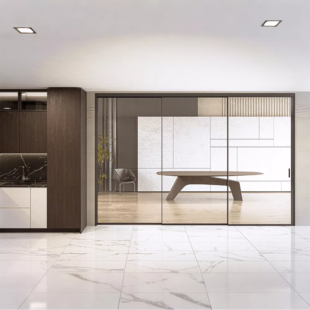 अति साँघुरो स्लाइडिङ ढोकाले पारम्परिक स्लाइडिङ ढोकाको भारी अनुभूतिलाई तोड्न, ठाउँलाई थप पारदर्शी र खुला बनाउँदै 1.5-2 सेमी अत्यन्त साँघुरो किनारा भएको अल्ट्रा-साँघुरो फ्रेम + न्यूनतम ट्र्याक डिजाइनको प्रयोगलाई जनाउँछ। सानो अपार्टमेन्टको क्षमता विस्तार गर्ने होस् वा ठूलो फ्ल्याटमा विलासिताको भावना बढाउने होस्, यसले "अदृश्य सीमा" को रूपमा कार्य र सौन्दर्यशास्त्र बीचको पूर्ण सन्तुलन हासिल गर्न सक्छ।
